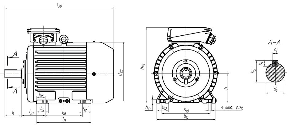 - без лап с фланцем - IМ3081 (для 6А225, 250 - IM3011, IM3031; для 6А280 - IМ3011).